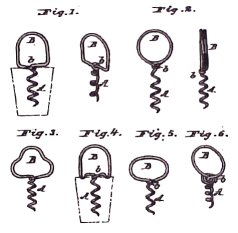 1884 September 2 U.S. Patent No. 304,299 (left) by William Crabb, Applied for July 5, 1884 - Corkscrew (Wire Corkscrew) for an improvement to the "class of corkscrews that are formed from a single piece of wire". The patent describes a stronger joint between the handle and the wire helix. The claims are obviously aimed at improving Clough's Patent No. 161,755 of April 6, 1875.(right) |