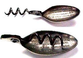 1882 September 12 U.S. Patent No. 264,391 "Combination Spoon and Folding Corkscrew". Although issued to C.T. Williamson, this design was possibly originally conceived by W.R. Clough. It was listed as a Clough Patent in a Clough Corkscrew & Capsule catalogue of March 1887, some five years after the dissolving of the Clough & Williamson partnership. Apparently neither company ever manufactured this particular patent in North America, as no known example has been found. |