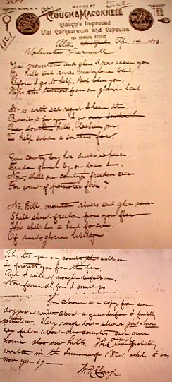 This poem, originally written in the summer of 1861 at 16 years of age, was recounted and handwritten by Clough himself, while at the Clough factory in Alton on a piece of Clough & Maconnell, New York stationery (with New York crossed out and replaced by Alton) on April 14, 1893. |