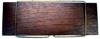 July 4, 1882 Bill File Patent 3x 8.5 thin mahogany board with a brass wire paper clamp - paper label on the back |