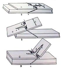 June 16, 1874, U.S. Patent No. 152,078 (left) example - Bill Files. This was for a spring loaded paper bill file with a movable hinged plate. This picture shows (right) a mahogany and nickel plated steel clamp clearly marked CLOUGH'S PATENT JUNE 16, 1874 for securing paper files. I was very pleased to acquire this on Ebay as a Mouse Trap!