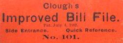 On June 24, 1882 Clough filed duplicate patent applications for his "Binder and Holding Device". The first was in his name as assignor to the Clough Manufacturing Company of New Jersey. The second was in his name and not assigned.