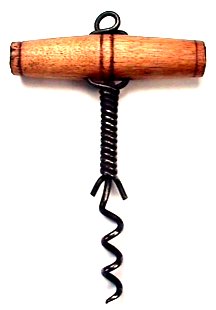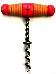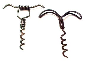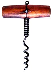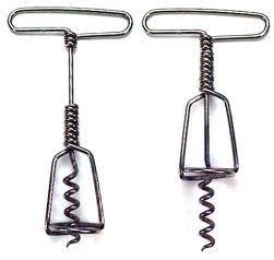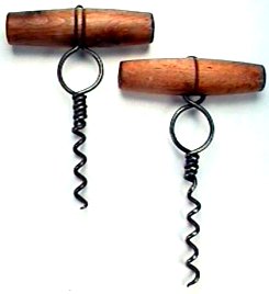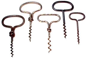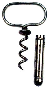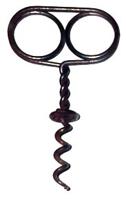 An unusual English wire corkscrew fabricated from two pieces of wire, with two prongs to engage the cork to impart a twist to assist in withdrawal. |