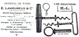 ![]() An advertisement illustrating four types of Clough wire corkscrews manufactured and marketed by H.& L. Lamoureux 1915-1933. |