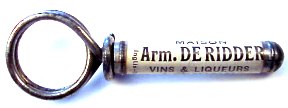 A two finger nickel plated wire corkscrew with the same distinctive steel German sheath as above. |