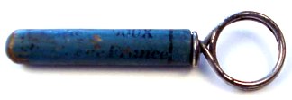 A nickel plated steel twisted wire peg & worm. The pipe tamper peg is a wire coil wrapped around a straight wire pin and the worm a left hand helix with the peg hole and short shaft all made from one piece of wire. It was not by Clough but an example of English Registration No. 528,199 of July 27, 1908 by Frederick Sunderland, Lionel Street, Birmingham. |