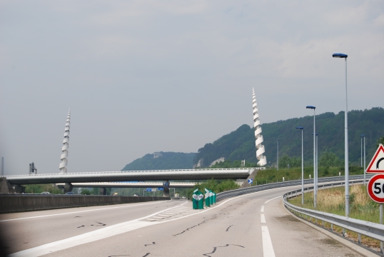 Submitted by Godefroy Perot, Dinant (Belgium): "I was recently on the way to Dinan in Britain (France) and at the entrance of the 'Pont de Normandie' over the river Seine, on the north side of the bridge, you can see two big corkscrews. They are maybe 100 meters high."