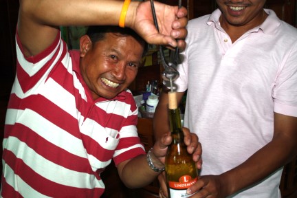 Do you remember all of those stories we had in the past about removing a cork without a corkscrew?* This past Wednesday Alf Erickson and his wife Watcharee visited her family north of Bangkok today. Alf wrote "I brought a couple bottles of wine....but, I forgot the corkscrew. Her uncle came to the rescue with a special corkscrew." Proof that there can be life without a corkscrew!