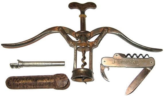 The Lemoine A-1 plus two additional Lemoine advertising corkscrews