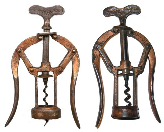 of the Heeley and the two piece is the later production.The A-1 on the left advertises Lemoine Champagne. The neck at the bottom of the frame is larger than the example on the right to accommodate larger diameter bottles. Also note the web helix.
