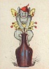 Last week a partial deck of cards called the Game of Goblins was offered for sale on eBay. The cards were published by L. Prang & Co., 159 Washington Street, Boston, Massachusetts. The seller dated the deck at c.1865. A goblin is pulling a cork from a bottle in the card second from bottom right.