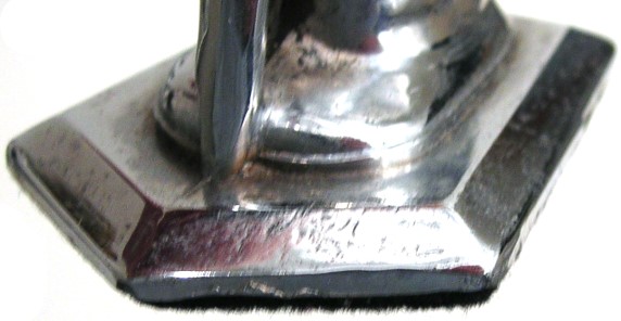 The "Negbaur" name also appears on the parrot corkscrews which were the design patent of M. D. Avillar of New York (#78,554 issued on May 21, 1929). Negbaur received many design patents from the 20s through the 50s for bill clips, pocket flasks, cigarette lighters, and other utensils. His cousin Hal Negbaur of New York knows very little about him other than to say that he was "always -tinkering with something." Many of the figures without turning head are marked "Demley". Schuchardt's son vaguely recalled that "Demley may have been the legal guy from Great Neck that working with my father and the manufacturer."