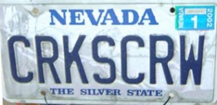 Reno, Nevada - When Larry Gralla relocated to the Silver State, he adorned his car with a CRKSCRW license plate. Now his Beamer has an even fancier CRKSCRW (photo below).