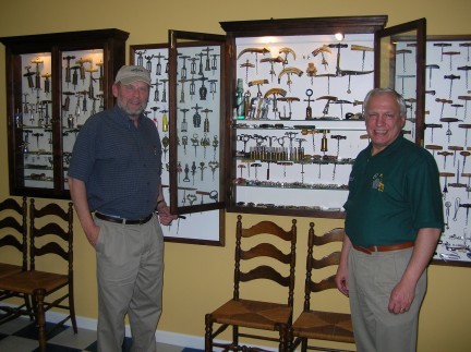 Cookeville, Tennessee - The Weekly Screw editor travelled to Nashville for the 28th annual Just for Openers convention (more on that in the next issue). A pleasant break in the trip was an April 20 stop at the Cookeville home of Tom and Tricia Lawrence for corkscrew viewing, a glass of wine, and a fabulous lunch. The super collection of corkscrews was displayed in special built wall hanging cabinets, antique cabinets, and whereever the plentiful collection could find some extra space.