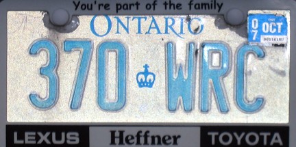 Ontario, Canada - Ron MacLean reports "Unfortunately I do not have a custom corkscrew license plate but about a kilometre away from home I recently I spotted this wonderful plate. To have the government issue me with a plate with the famous initials WRC of William Rockwell Clough, Alton, New Hampshire (a manufacturer of over a billion wire corkscrews) would be terrific, some people have all the luck!"