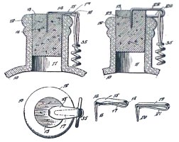 |  | 1904 December 27 U.S. Patent No. 778,593 - Applied for April 6, 1904 - "Closure for Bottles or the Like" granted to Alexander Maconnell possibly the son of James Maconnell, (Clough's frequent partner) for a Closure for Bottles incorporating a Clough type metal band wire corkscrew. The patent attorney was non other than Charles C. Gill, Clough's patent attorney. It may be presumed that Clough had more than a passive awareness of this related invention. |