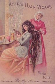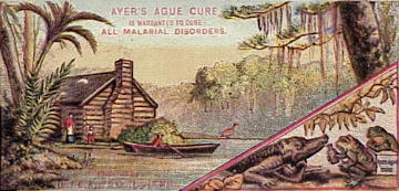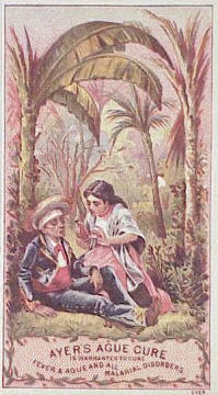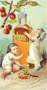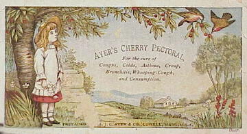 Trade cards from Dr. J. C. Ayer & Company, Lowell, Massachusetts advertisie various products including Ague Cure, Cherry Pectoral, Hair Vigor, and Sarsaparilla.