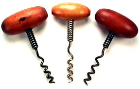 A 20th century German corkscrew influenced by Clough. It is simply a piece of twisted wire pinned in position off centre in a wood handle. The shaft is wrapped tightly with a lighter gauge wire to provide some improved rigidity and adds a decorative pattern to an otherwise stark corkscrew. |