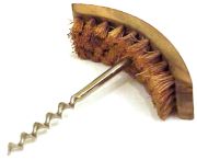 Wirtz, Virginia - This rare corkscrew is designed so the user can more efficiently clean the top of the bottle than when using corkscrews with a simple little brush mounted in the end of the handle. To use this fine design, grasp the handle and turn the worm into the cork. Once it has penetrated the cork, push the shaft all the way down until the brush comes in contact with the bottle top. Twist the handle right and left to get rid of any crud that has accumulated on the bottle neck.