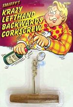 Wirtz, Virginia - One may think of this corkscrew as "Krazy" or "Backwards" as the sales card states but one must consider the plight of lefties worldwide. Prior to the introduction of this trusty corkscrew, due to the handicap, they have always been forced to have others open their wine. Their bumbling attempts to use a righties corkscrew result in damaged corks, broken glass and even punctured hands. Now for only $79.95 plus tax and shipping, their problems can be put behind them. For ordering details write to Al.Coholic@alcoholic.it