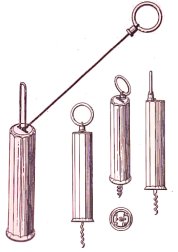 Neuilly, France, April 10, 1990 - Bruno Desnoulez and Andre Dejoux patented a tackle reduction corkscrew back in 1983. The original design has a pulley system. A handle is attached to the pulley via a "rope" which pulls a cork out when the handle and a series of telescoping tubes are lifted. The mechanical patent (No. 4,93,733) acknowledges the 1908 German patent (No. 204,020) by Klostermann and a 1970 French Patent (No. 1,589,350 by Aimé Ceppe.