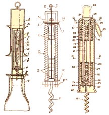 In discussing the Klostermann and Ceppe patents, Bruno and Andre state "The embodiment of these corkscrews is complicated and onerous; moreover, they generate friction that cause a part of the gain in the reduction of the removal effort to be lost." In their 1983 they cover three different designs including a t-handle telescoping version and a ring pull version.