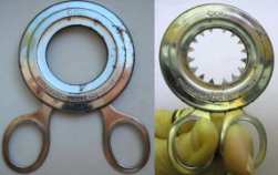 WOW. Very unusual, unique CORK EXTRACTOR. You probably do not own one of these, many of you have never seen one! This is a 2 finger loop, squeeze action, cork extractor WITH TEETH (like the great white shark-jaws). The top of the round ring extractor has the initials C.O.C. The bottom of the ring extractor has the printing "Brevete S.G.D.G. DEPOSE Made in France." Could this be the long lost cousin to J. Perille Depose of Paris, France???? When the two finger loops are squeezed, the inner ring will extend sixteen (16) sharp, pointed teeth that will grip the cork, then twist, and the cork is removed.
