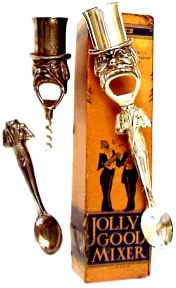 Trumbull, Connecticut, August 16, 1932 The Weidlich Manufacturing Company of Bridgeport, Connecticut has been assigned Alfred J. Flauder's new U. S. Design Patent Number 87,567 for a "Design for a Bottle Opener." Weidlich has been marketing the combination cocktail spoon, corkscrew and cap lifter under the name "Jolly Good Mixer." It is produced in silver plate, nickel plate, and bronze plate.