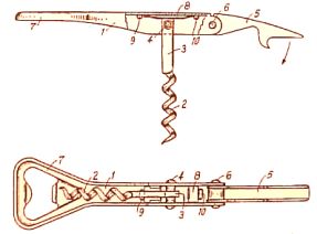 Solingen-Merscheid, Germany, August 18, 1955 - Karl Breithof Söhne has received German Patent No. 1,711,980 for a "Hebelkorkzieher." The Waiter's Friend style features a bottle cap lifter. The handle and neckstand are made from stampings. An inner spring keeps the worm in a solid, fixed position when pivoted out for use.