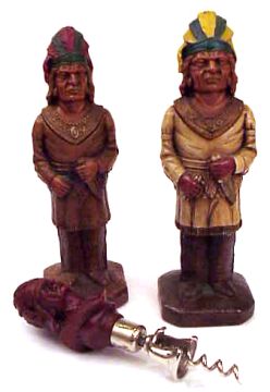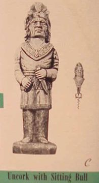 Syracuse Ornamental Company's Indian was described as "Indian Corkscrew. Hidden in the neck of the Wooden Indian is a combination corkscrew and cap lifter. An unusually decorative and useful gadget. 9 inches tall, attractively finished. No. C279, $3.95 each."