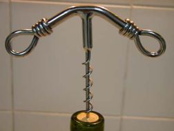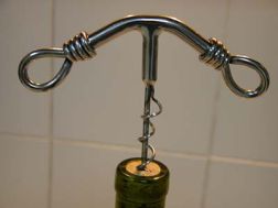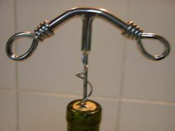 "As can be seen from the accompanying photographs the beautifully designed corkscrew falls far short of doing its job. The sharp point....though thought to facilitate a bulls-eye pierce...needs quite a nasty push to even penetrate the cork to the point where the 'screw' can get its purchase. And, when the flimsy (too thin?) screw starts to bite...well, it just plain bends back on itself. The whole mechanism is left ruined....the cork is damaged....and, more important, the cork is left un-budged."