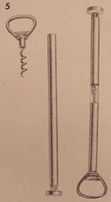 The "Champagne Corkscrew Tap" was "Made in England for the connoisseur. Chrome plated with a handy wooden handle and finger pull to make champagne drinking a pleasure. Avoid trouble with corks, use this convenient corkscrew tap. No. E436 - $4.95 each.