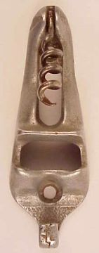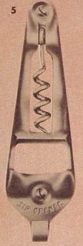 The wall mounted opener was called the "Zip Opener" and was given this description: "This handy gadget fastens to wall, door or back of bar. Will pull corks, open vacuum sealed jars and bottles and remove caps from soda bottle. Hang towels on the bottom hook. Aluminum 5 inches long. No. C954 - 75¢."