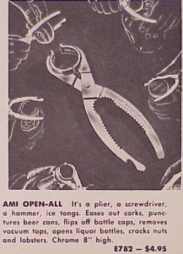 Bar Mart offered the early patent of Joseph Amigone which did not include the corkscrew. Amigone added the corkscrew to his tool in 1967. See the October 25 issue for more information.