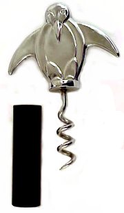 Toledo, Ohio, February 21, 1933 - The next time you reach for a bottle of wine, grab one of Kurt Rettich's penguins. Today he was issued U. S. Design Patent 89,308 for his "Design for a Combined Corkscrew and Guard." It consists of a two finger pull Penguin and a bakelite sleeve to protect the worm. It is manufactured by Reynolds Spring Company, Jackson, Michigan. Reynolds is a manufacturer of springs and seats for the automotive industry. Their Bakelite Division produces plastic knobs used on dashboards, steering wheels and other plastic wares.