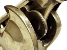 Hull's corkscrew is easy to use. You rest the frame on the bottle neck and turning the worm into the cork raises the lever. Pushing down on the lever will exract the cork.