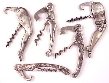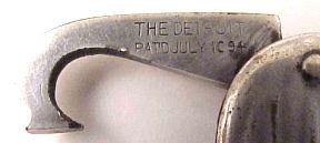 The corkscrew is also being produced with handles in the shape of legs and mermaids as well as silver examples. Prior to the issue of Puddefoot's patent number 522,672 issued today, Davis produced some corkscrews with the Puddefoot design showing his 1891 patent date and marked IMPROVED and OTHER PATS. PNDG. Two examples in the photo below are the mermaid and the silver handle corkscrew at right center which have a slightly more stout neckstand. These two also have advertising: "Compliments of Charles Staebler, 257 Beaubien St., Detroit, Mich." Staebler operates a saloon at that address.