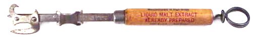 The tool was marketed under the name Sure-Cut and was produced with a variety of shapes of wood handles. Some of the handles were drilled out on the end to accommodate a Cllough wire type corkscrew. The tool was also sold for advertising purposes with the round handle allowing plenty of room for a message. One Detroit, Michigan example reads "Compliments of The Peerless Products Company, Manufacturers of High Grade Liquid Malt Extract Already Prepared, 3520 Mitchell Near Gratiot, Phone Melrose 2464, 5046, 5047, We Deliver."
