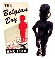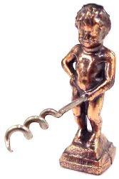A number of years ago, kitty-corner from the statue was a souvenir shop. The display in the window was of hundreds of Mannekin Pis' in all sizes and materials. The number with corkscrews was mind-boggling and, again, in all sizes.