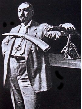 Kenn found the giant corkscrew on a table at a show where the dealer said he had purchased it at a Pennsylvania estate sale. Kenn lugged his 10 pound, 26" long corkscrew to his car thinking about how the elephant from which it came had to carry two of those tusks around everyday. When he got home, he immediately called his friend Ron MacLean to report his find. Ron remembered a 1909 photo of corkscrew inventor Edwin Walker with such a large corkscrew hanging around his neck. Ron contacted a tool collector friend and within hours he had a copy of a the photo from Patented & Transitional Metallic Plans in America, Vol. II by Roger Smith, Athol, Massachusetts in his hands.
