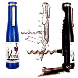 Maniago, Italy, July 26, 1988 - Germano Farfalli has been granted United States Patent Number 4,759,238 for his "Pocket Corkscrew" in the shape of a bottle. The bottle has a folding worm and neckstand in the "Waiter's Friend" style. The neckstand also has a bottle cap lifter. A pen clip is a nice addition for the waiter to keep the corkscrew handy in his shirt pocket.