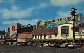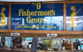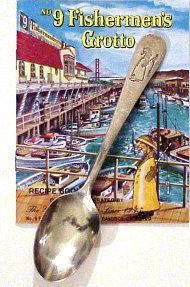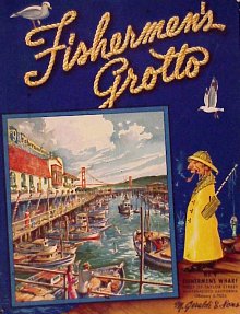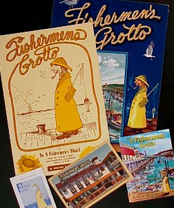 Pick up one of the little recipe booklets and learn how Mike Geraldi who came from a long line of fishermen built his seafood restaurant on the Wharf in 1935. The booklet tells us "He wanted a trademark symbolic of the fishermen and so 'the Little Fisherman' was created, weatherbeaten, dour, and bringing a smile to all who see."