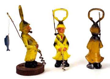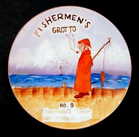 I've visited San Francisco and Fishermen's Wharf many times. But it wasn't until February 2001 that I found the above figure staring me in the face. I was walking toward Fishermen's Wharf from Pier 39 and there it was - Fishermen's Grotto Restaurant - with the little fisherman corkscrew collectors covet now visible everywhere!