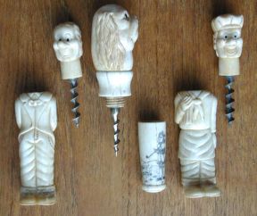 On ebay and other places where antiques and other collectible item are sold suddenly a new type of corkscrew appeared the last 6 - 9 months. They are found first of all in US both also in Western Europe. They are sold under a variety of declaration from ivory to bone and unique item - all claimed to hand-carved some claimed to be "old items". The price varies from 25 to some hundred dollars, but since May 1st 2003 the trading is really slowing down.
