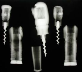 To convince skeptical people, I took some radiographs of the corkscrews. One can see straight black lines on these radiographs which represent either just lack of material or the gluing material, which do not absorbed the X-ray beams as much as the bone material. One can in this way appreciate the different pieces that compose the whole figure. Looking very carefully on the radiographs it is now and then possible to observe the arch lines (trabecular pattern), which very often are seen on radiographs imaging the long bones internal structure. On radiographs one can see that the worm is screwed into the material, but several haves shown some extra gluing material in connection with the neck of the worm. Even to convince the very mistrustful people, I even made histological microscopically examination of a very small piece of the material and that proved again that it is genuine bone.