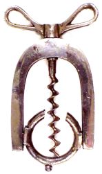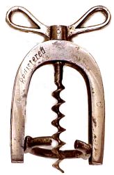 Solingen, Germany, June 12, 1899 - Julius Everts has a new German Registered Design (Number 118,056) for a corkscrew. Everts horseshoe shape frame has a sliding neck ring which can be folded flat when not in use. The neck ring slides up and down in the frame to facilitate removal of the self-extracted cork. Everts will market the corkscrew under the names Bonsa and Andree.