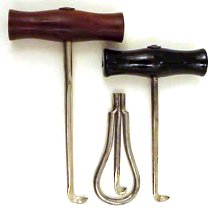 Boston, Massachusetts, March 6, 1888 - Benjamin Greeley has invented a new Stopper-Extractor for which he has been granted U. S. Patent No. 379,010. Greeley's "cork-extractor" has a lengthwise groove in the metal shaft and another in the angled extension. To use his tool, the end is pushed between the cork and the bottle. Greeley says the lengthwise groove forms "a passage for the escape of air and gas from the bottle, whereby the cork is not only more easily pulled, but the pent-up air or gas is given a chance to escape, thus obviating the annoyance now caused by the popping and spurting in opening champagne, cider, and the like."