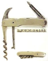 Barmen, Germany, March 31, 1898 - "Hebelkorkenziehermesser" is the title of J. A. Schmidt's German patent for a knife with a pump lever corkscrew. It has a file blade, a foil cutter, a wire cutter, a neck stand, and a worm which fold into the handle.