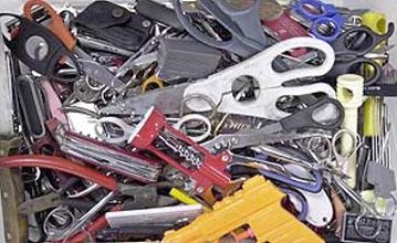 During the first five days of September 2003 the Richmond, Virginia airport confiscated 106 pairs of scissors, two torch lighters, one box of strike-anywhere matches and a colorful assortment of pocket knives, corkscrews, Leatherman tools and box cutters