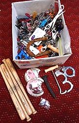 You'll find a prong puller amongst the items confiscated at JFK International Airport (left photo) and did any good corkscrews get left at the Louisville, Kentucky airport? (right photo):